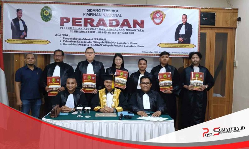 Medan, Postsumatera.id – Perkumpulan advokat dan Pengacara Nusantara (PERADAN) kembali menggelar Sidang Terbuka Pimpinan Nasional pada 1 November 2025 di Kota Medan Provinsi Sumatera Utara yang dipimpin langsung oleh Ketua Umum PERADAN, Adv. Dr. Cand. Indranas Gaho, S.H., M.Kn., CLA., CIA., M.Th., C.Md., ASP., ASKC, Sabtu (01/11/2025).