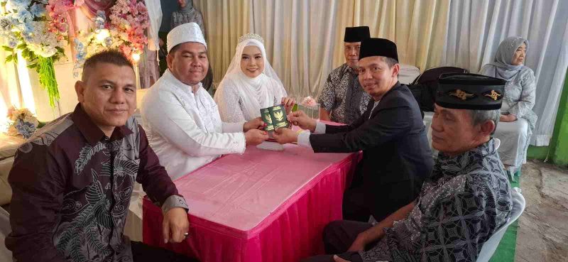 Setelah menarik napas sejenak, H. Ramlan memimpin prosesi akad nikah dengan khidmat. Di tengah keheningan, suara lantangnya memandu Dicky mengucapkan ijab kabul, menuntaskan penantian sepasang anak manusia untuk mengikat janji suci. Momen ini menjadi penutup sempurna atas perjuangan sang Kepala KUA yang berjuang di jalanan Medan.
