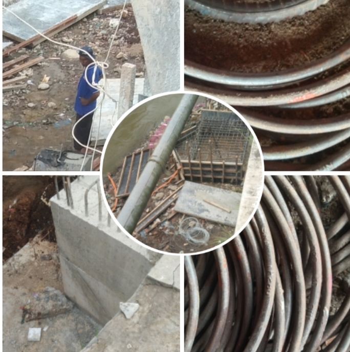 Aktivitas Proyek Pembangunan jembatan sudah berlangsung diduga adanya Papan informasi resmi yang biasanya Menampilkan detail Proyek Seperti sumber anggaran ,Pelakasana,dan durasi .selain itu ,Para Pekerja di lokasi tidak Menggunakan alat keselamatan kerja seperti helm dan rompi yang menjadi Standar wajib dalan konstruksi dan tidak Sesuai RAB tersebut .