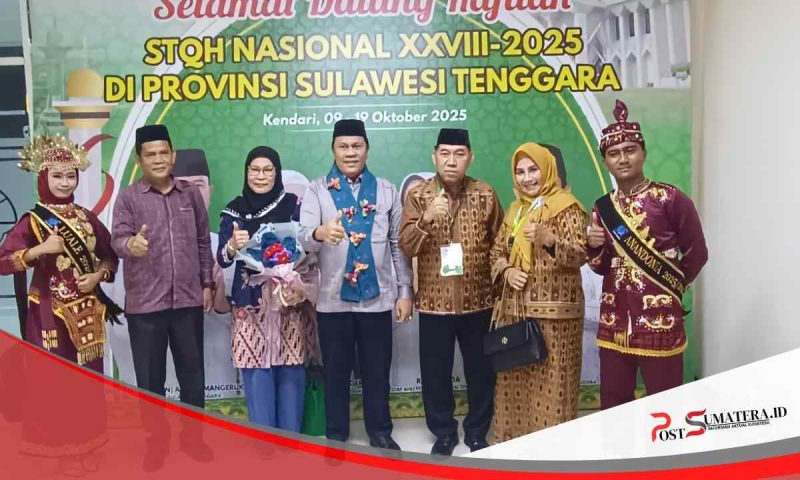 Kendari, Postsumatera.id – Kepala Kantor Wilayah Kementerian Agama Provinsi Sumatera Utara H. Ahmad Qosbi, S.Ag, MM didampingi Ketua DWP Kanwil Kemenagsu Hj. Triana Santi Ahmad Qosbi menghadiri Pembukaan Seleksi Tilawatil Qur’an dan Musabaqah Al-Hadits (STQH) Nasional XXVIII Tahun 2025 di Tugu Persatuan, Kota Kendari, Sulawesi Tenggara, Sabtu malam (11/10/2025).