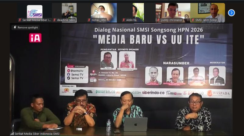 Jakarta,PosSumatera.id -Serikat Media Siber Indonesia (SMSI) menggelar Dialog Nasional bertajuk “Media Baru vs UU ITE” di Kantor Pusat SMSI, Jalan Veteran II, Gambir, Jakarta Pusat, Selasa (28/10/2025).