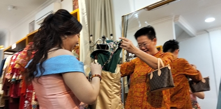 “Inspirasi bisa datang dari mana saja. Misalnya, kami sering mengombinasikan motif bunga dengan unsur burung khas etnis Tionghoa dalam desain kami,” jelasnya.